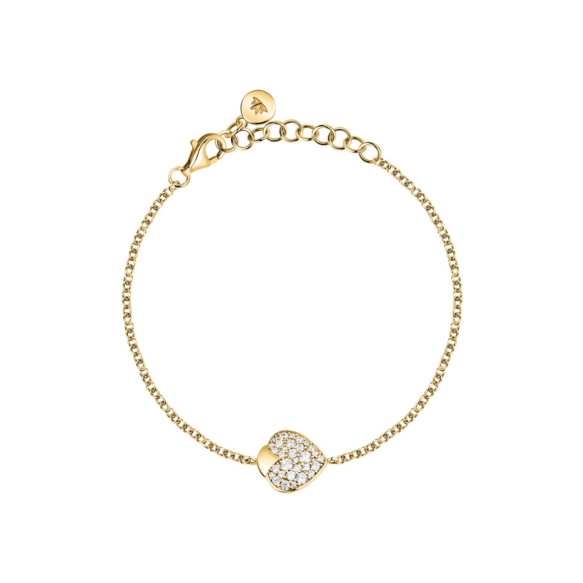 MORELLATO 18k GOLD PLATED ISTANTI BRACELET PAVE HEART CRYSTAL 16+3CM