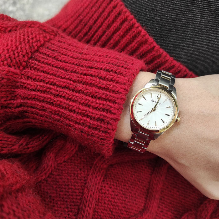 This elegant timepiece from the Classic Collection features a refined two-tone stainless steel case and bracelet, complemented by a silver-white dial with gold-tone hands and markers for a timeless appeal. Its domed mineral crystal enhances durability while the fold-over buckle closure ensures a secure, comfortable fit. A sophisticated addition to any watch collection, designed to elevate everyday style with understated luxury.