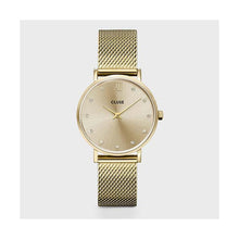 Looking for that bit of sparkle to finish up your look? Look no further. This Minuit watch for women will be your new favourite sparkling accessory. Designed with a champagne sunray dial, set with soft yellow crystals, a polished gold 33 mm round case and a gold mesh 16 mm strap. It’s the perfect watch to finish up your look. And you can easily adjust the strap by yourself. So no need to make a trip to your local jeweler before you can wear it.