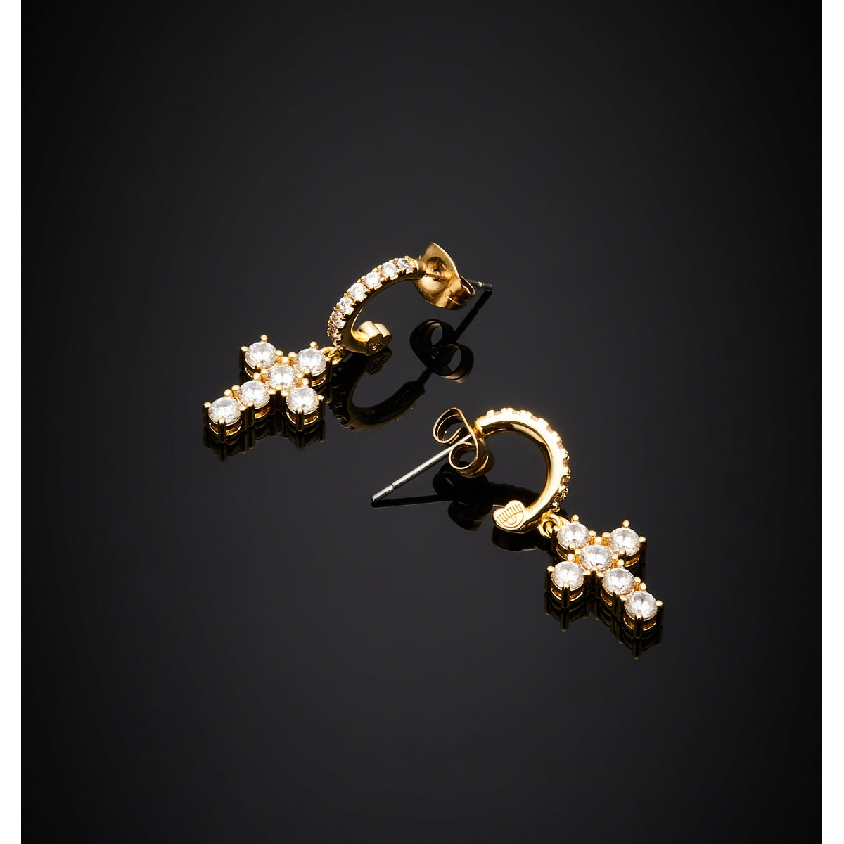chiara ferragni croci earring cross wh cz+yg plated 23mm