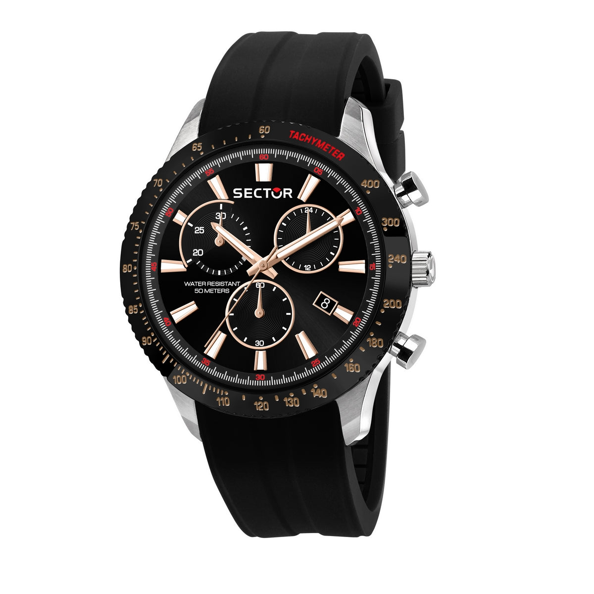 SECTOR 270 45MM CHRONOGRAPH BLACK DIAL BLACK SILICONE STRAP WATCH