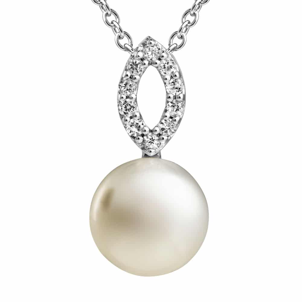 • Freshwater pearls set with natural white topaz and Sterling Silver, the perfect pearl jewellery