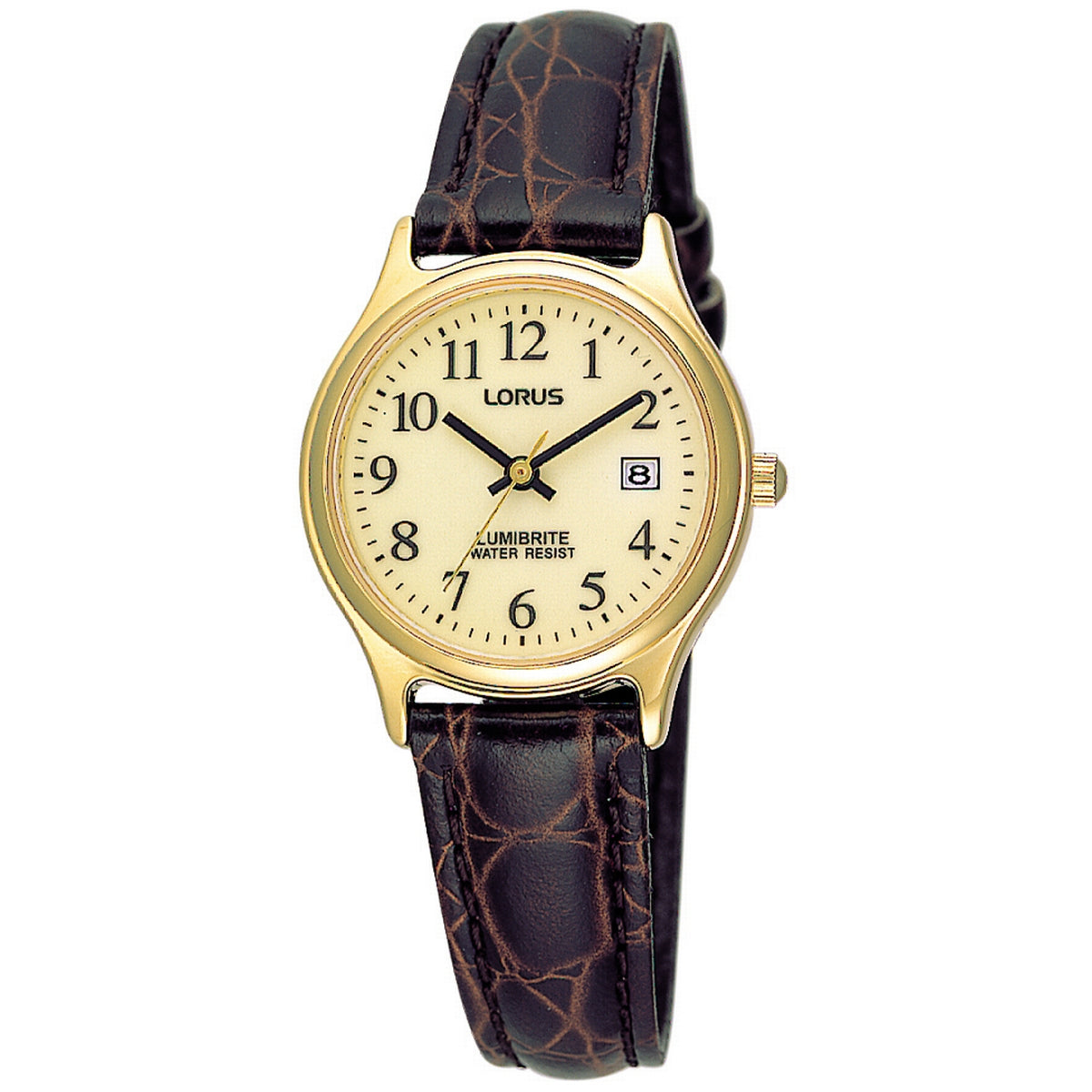 lorus quartz ladies gold plated lumibrite dial strap watch