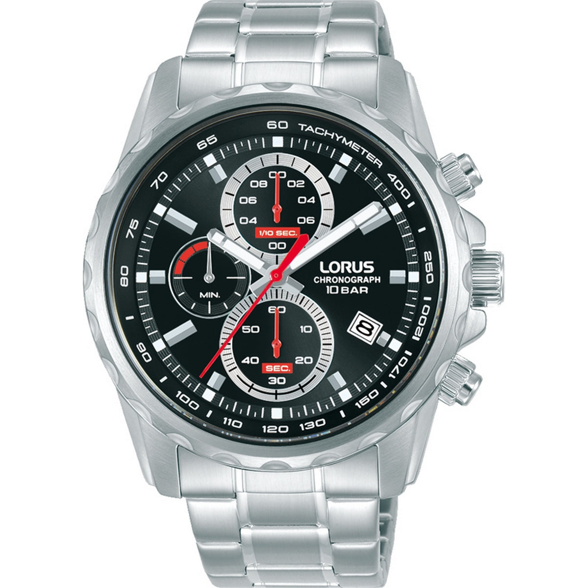 lorus quartz chronograph gents stainless steel black dial bracelet watch