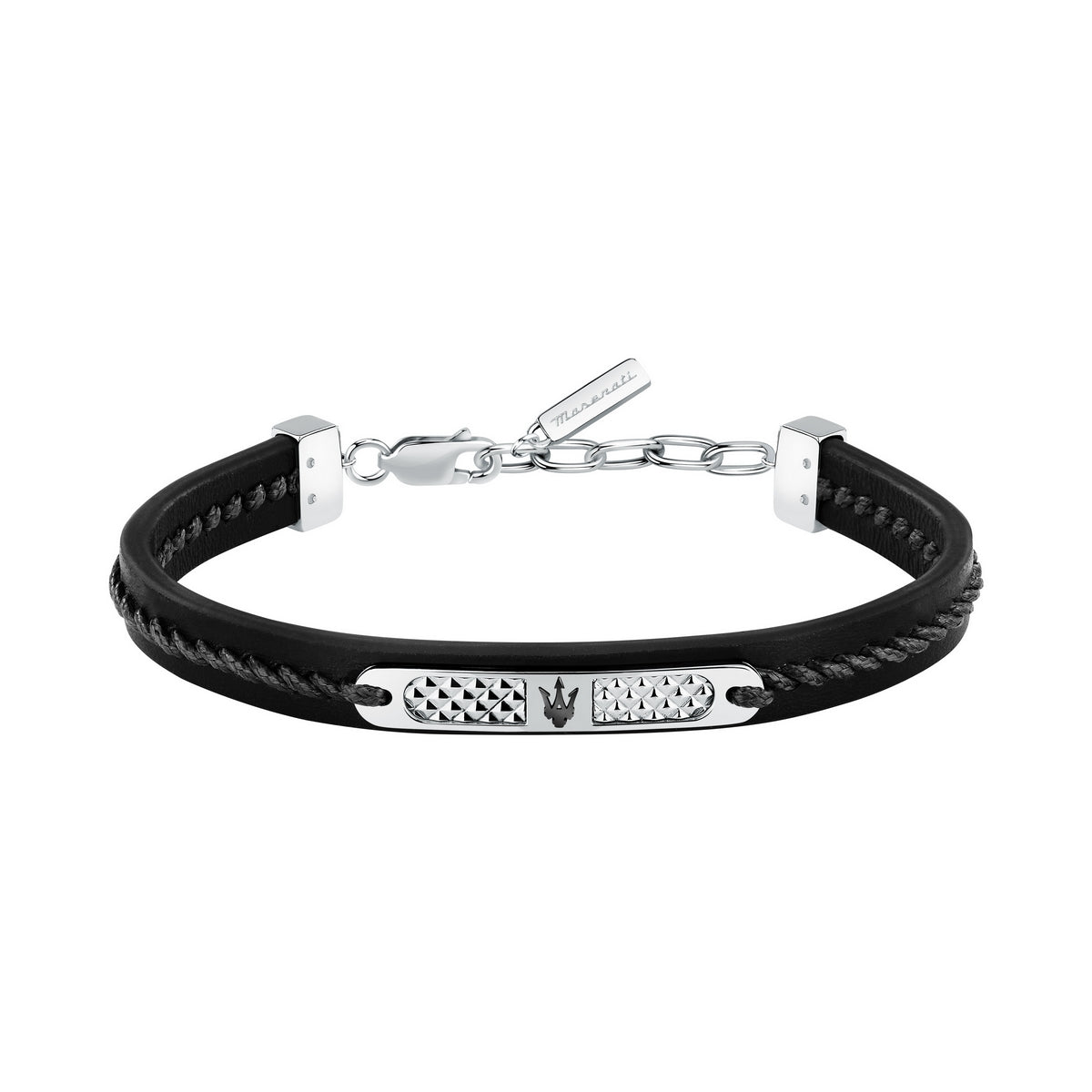 MASERATI JEWELS LEATHER BRACELET STAINLESS STEEL BLACK RECYCLED LEATHER BLACK 19+3CM