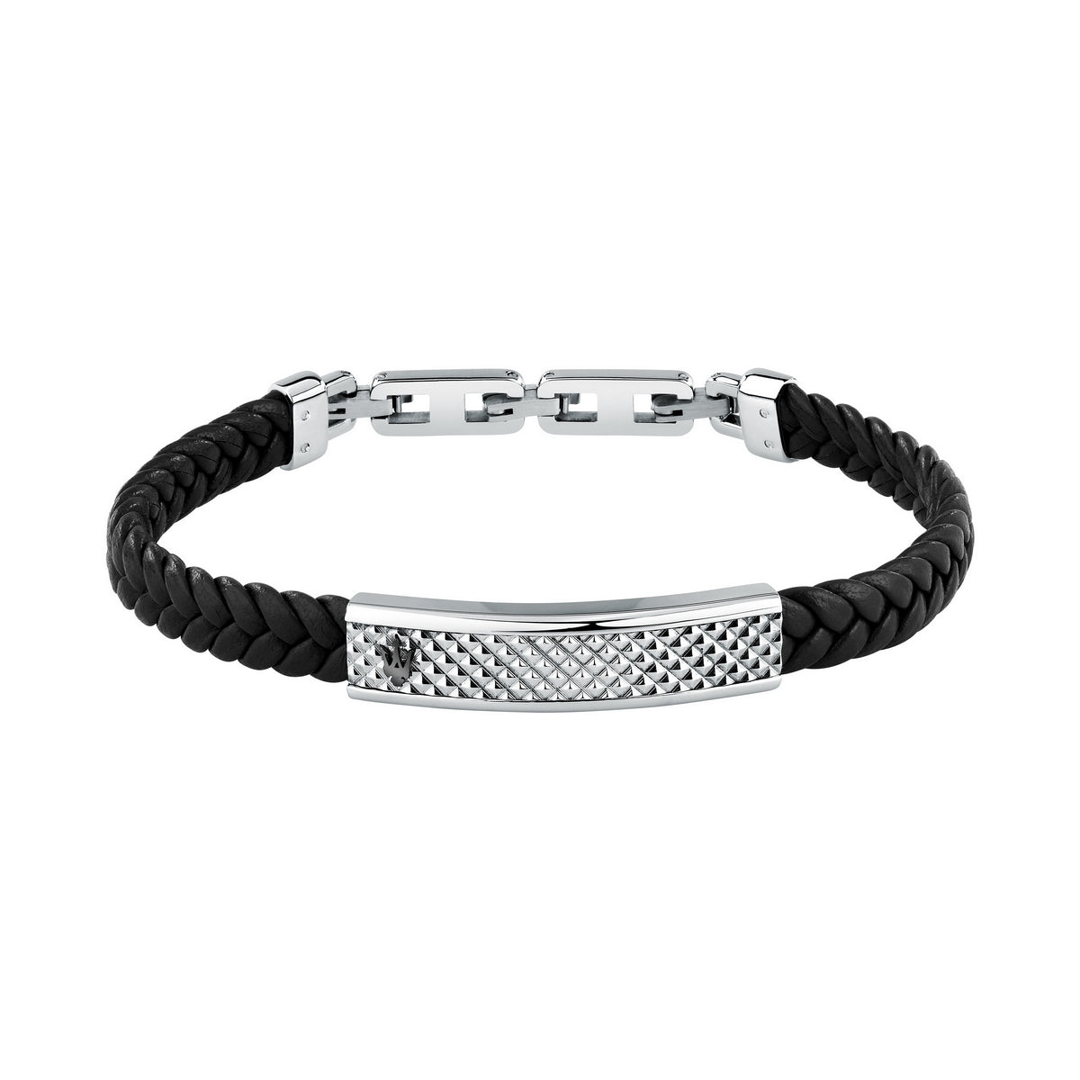 MASERATI JEWELS LEATHER BRACELET STAINLESS STEEL RECYCLED LEATHER BLACK 19+3.5CM