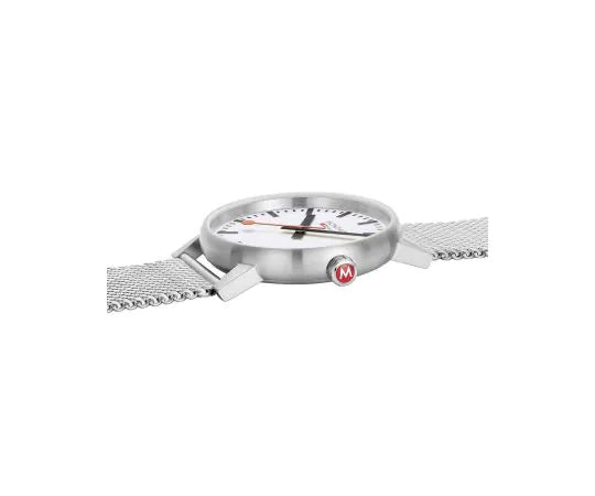 The Mondaine Evo2 Gent's Quartz Watch combines classic elegance with modern craftsmanship. Featuring a 43mm stainless steel case with a matte finish, its understated design suits any wrist. A fixed bezel and pressed stainless steel case back enhance its refined aesthetic. Water-resistant to 3ATM, this timepiece is a sophisticated accessory for everyday wear.