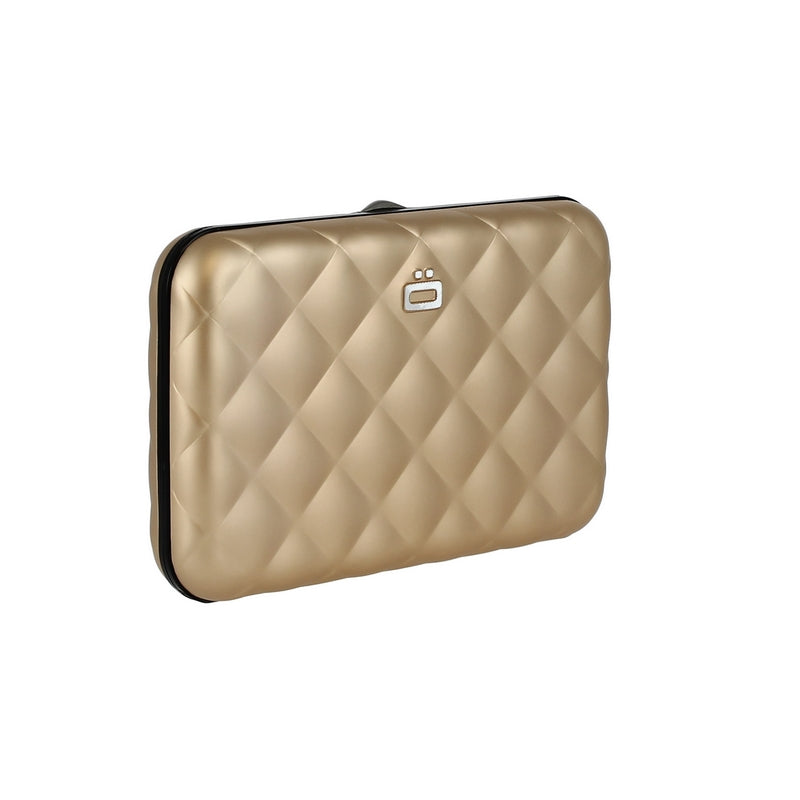 ogon quilted button rose gold card holder metal lock quilted aluminium