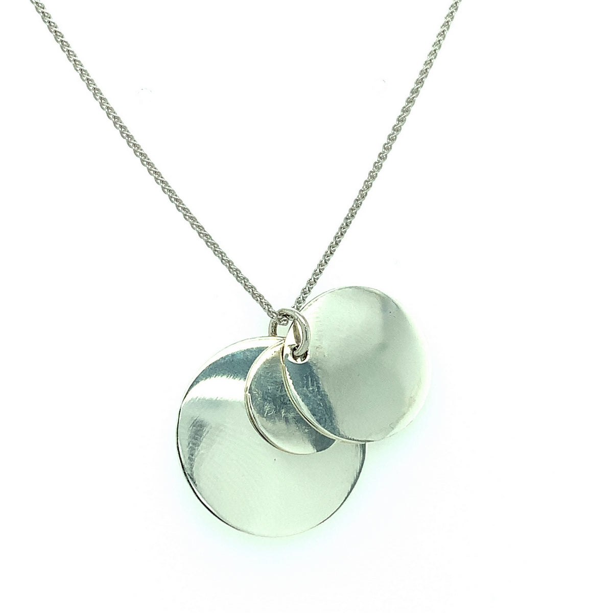 silver triple disc pendant 20mm diameter on 40cm chain a