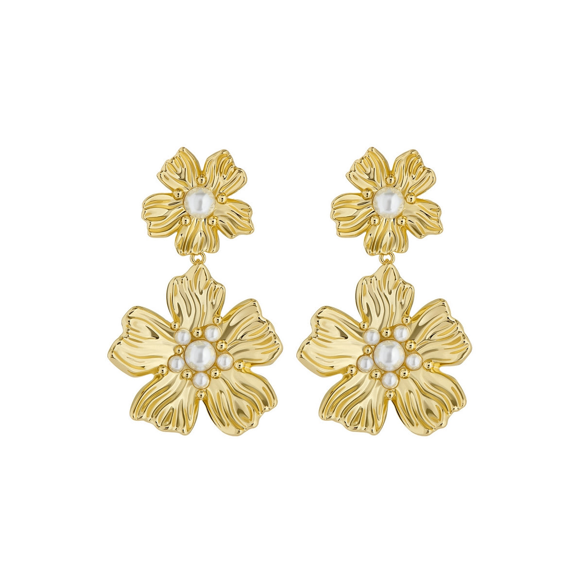 TED BAKER PETARIA: Flower Statement Drop Earrings Gold Tone Pearl 88% Brass, 10% Glass, 2% Stainless Steel, 100% Gold Tone Plating JEWELLERY TYPE: Earrings Drop METAL TYPE: PVD Plated Base Metal STONE TYPE: Pearl CLASP TYPE: JEWELLERY FAMILY: CHAIN LENGTH: