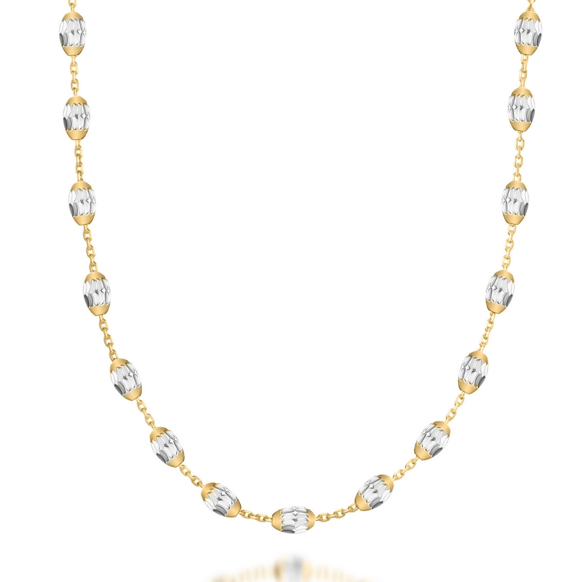 gold chain with silver beads. (22 inches)